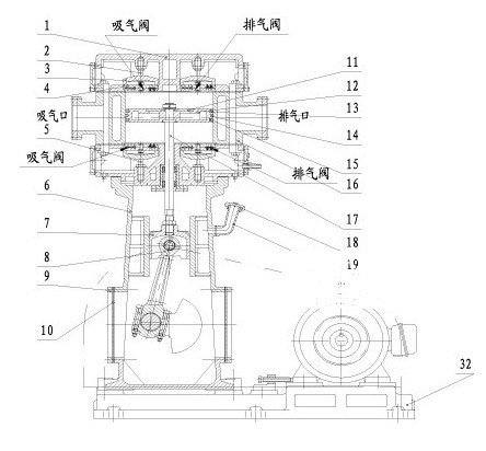 WLW系列無(wú)油立式真空泵主要由機(jī)械傳動(dòng)部分、機(jī)械抽氣部分和隔油部分組成,機(jī)械傳動(dòng)部分分為曲柄和連桿機(jī)構(gòu),由電動(dòng)機(jī)帶動(dòng)皮帶輪,然后通過曲軸、連桿、十字頭傳遞給活塞,由皮帶輪的圓周運(yùn)動(dòng)變?yōu)榛钊闹本運(yùn)動(dòng)。WLW系列無(wú)油立式真空泵機(jī)械抽氣部分主要依靠活塞在汽缸內(nèi)的往復(fù)運(yùn)動(dòng)來完成。氣缸內(nèi)的活塞上有活塞環(huán),保證被活塞間隔開的氣缸兩端氣密封性。WLW系列無(wú)油立式真空泵活塞在氣缸內(nèi)做往復(fù)運(yùn)動(dòng)時(shí),不斷的改變氣缸兩端的容積,一端容積擴(kuò)大吸入氣體,另一端容積縮小排出氣體;钊c氣閥的聯(lián)合作用,周期地完成 吸氣和排氣作用。隔油腔及充氣腔將機(jī)械傳動(dòng)部分與氣體流通部分隔開,以防止油漏入、或帶入氣缸內(nèi)。當(dāng)要求抽吸氣回收時(shí),充氣腔內(nèi)可充入該種氣體。以防止空氣漏入氣缸內(nèi)而影響氣體純度。